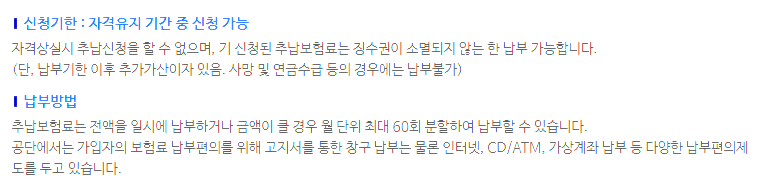 한번 추납을 신청한 경우에는 다시 취소할 수 없으며 만약 추납제도가 개정된다면 현재 분납 중인 경우만 인정되니 참고하시길 바랍니다.